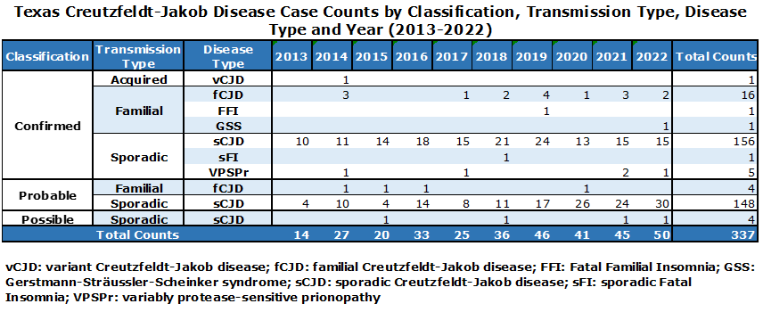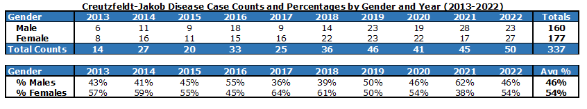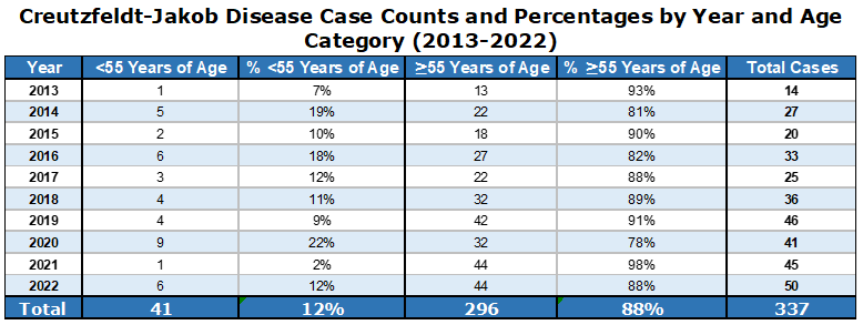 - The year a Creutzfeldt-Jakob disease (CJD) case is counted is based on the year of death.