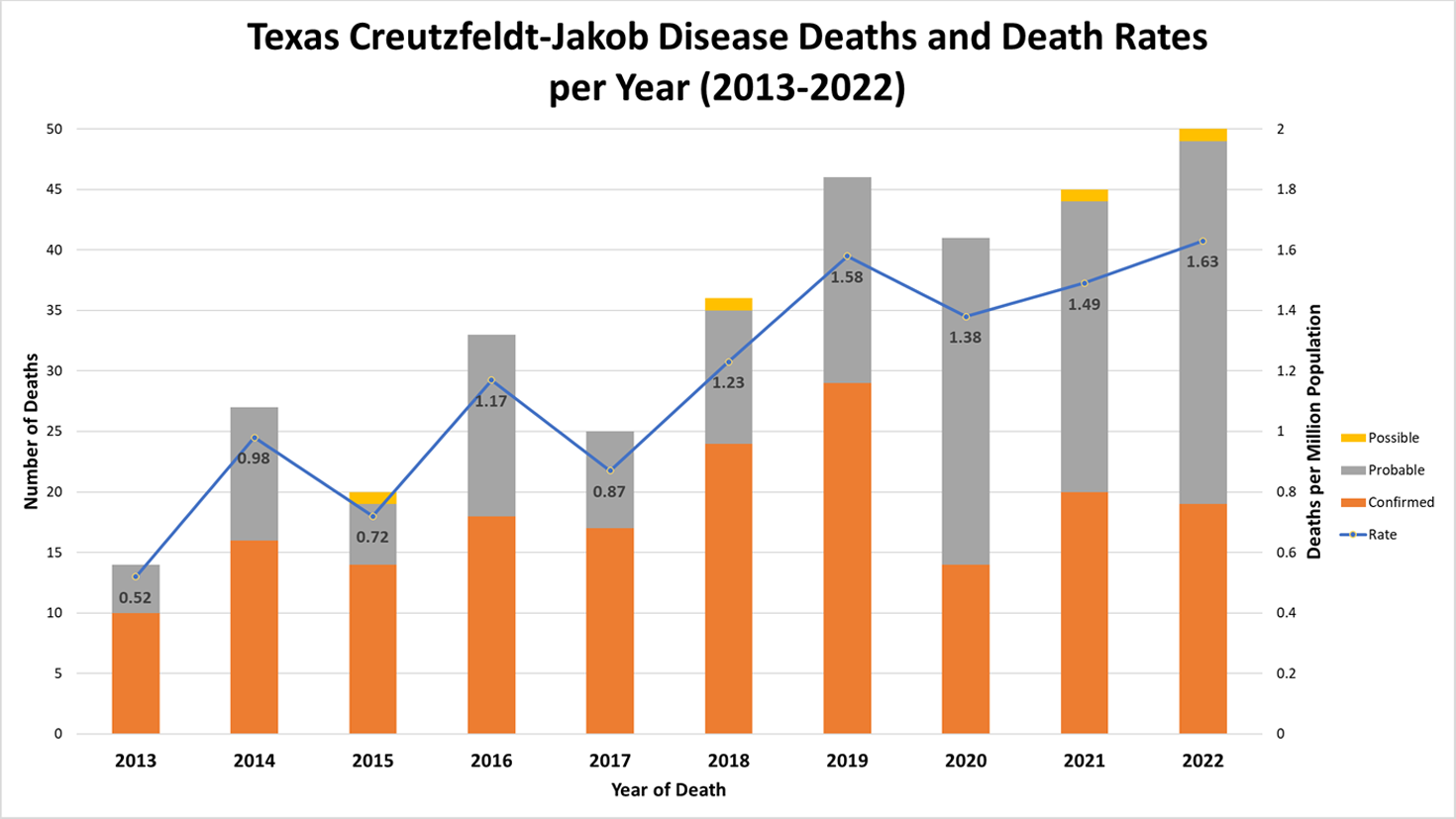 - The year a Creutzfeldt-Jakob disease (CJD) case is counted is based on the year of death.