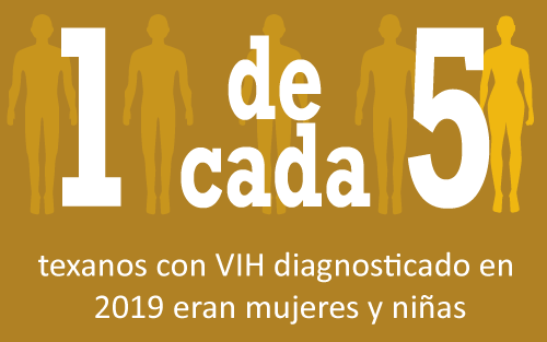 eran mujeres y niñas 1 de cada 5 texanos que con VIH diagnosticado en 2019 eran mujeres y niñas |