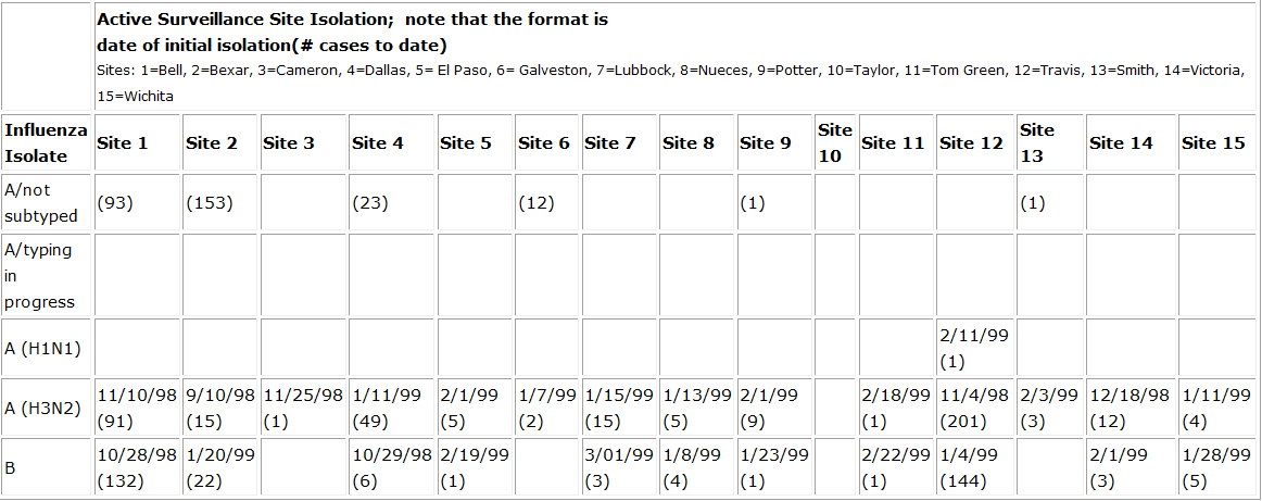 This page provides information about 1998-1999 Texas Influenza Surveillance Activity .