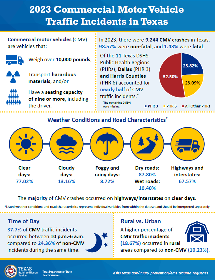 2023 Commercial Motor Vehicle Traffic Incidents in Texas Infographic; January 2025