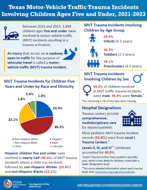 Texas Motor-Vehicle Traffic Trauma Incidents Involving Children Ages Five and Under, 2021-2023, Infographic; April 2025