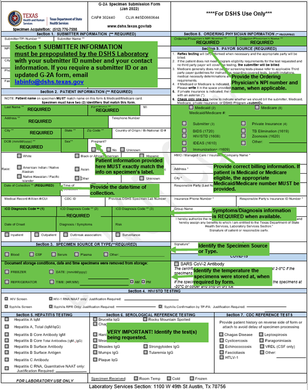 This guide was developed to help submitters with the DSHS Laboratory specimen submission process and to avoid the most frequent causes of specimen rejection.
