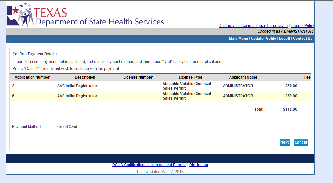 Payments - Online Licensing Help Center