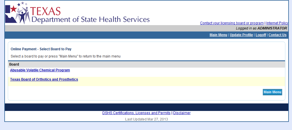 If you are the third party payer who received an email that an application was sent to you for third party payment, you will find the third party payment referral on the Main Menu under Additional Activities > Pay for Online Applications.